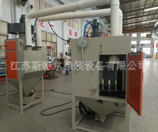 該設備不僅為客戶節約了人力物力,更為客戶的產品提升了一個檔次。行星轉盤式自動噴砂機配置6把高效噴砂槍,