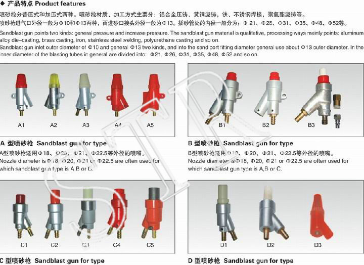 噴砂槍分普壓式和加壓泵式哪幾種。噴砂槍金屬材質、加工廠方法重要分:鋁和金壓鑄,純銅澆鑄,鐵、不繡鋼補焊,聚氨酯泡沫澆鑄等。