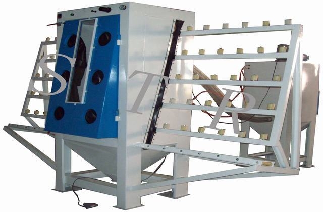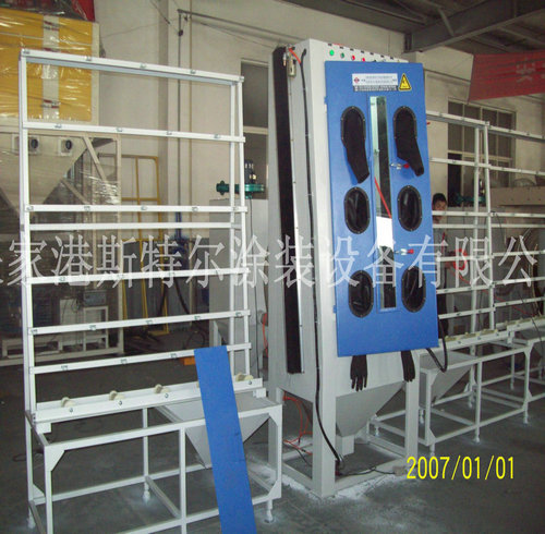 平板玻璃,大理石,金屬等板材垂直通過式干噴砂機,適用于寬度小于2.4米