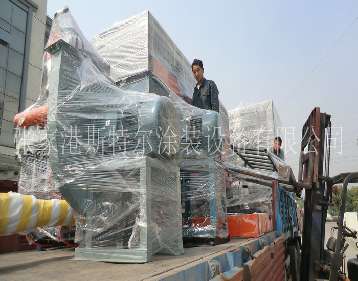 斯特爾機械為中東某國家生產的全自動吊鉤式噴砂機發貨,到訪專家組通過考察、審核,試機后一致認為斯特爾機械生產的噴砂機創業項目超出了要素高技術,不斷創新意識比較突出,產品的性能方面優良,統一簽字此創業項目確認竣工驗收初評。可以到貨!