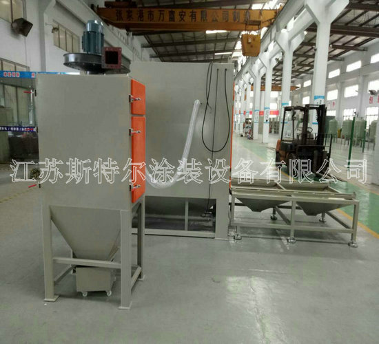 多工位手動噴砂機是我公司為上海麥鑫船舶科技四虎影视免费永久大全-四虎8848精品成人免费网站-四虎视频国产精品免费入口-四虎4hu永久免费网站影院量身定制的一款噴砂機,用于船舶渦輪增壓器、調速器的維修保養等,以提高產品表面處理的效率及質量而定制的噴砂機。該設備設計有3個操作工位,承重1噸的工作臺車架,方便對工件360度進行噴砂,該噴砂機可以實現多方位噴砂處理有效解決在噴砂加工期間的大工件無法翻面等問題,噴砂機工作室采用噴砂耐磨橡膠板雙層防護等特點提高工作倉的使用年限,照明裝置采用LED噴砂機專用照明燈,亮度及使用壽命都非常好。 除塵系統是由2濾筒和一臺2.2KW的風機組成,濾筒清洗由脈沖巡回系統反吹進行清洗。可一次性吹掃殘留在濾筒表面的微小顆粒。此脈沖控制儀采用微電腦自動化控制,只需簡單調試便可使用。噴砂室空間為4400mm*2000mm,配有4盞防爆節能燈,簡單方便的設計非常符合客戶的要求。