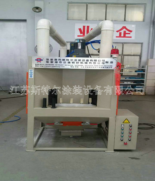 斯特爾機械為泰州客戶設計非標的圓盤自動式噴砂機交付使用! 自動式行星轉盤式自動噴砂機是泰州創新電子總公司為旗下第七個子公司:中山市臺海電子四虎影视免费永久大全-四虎8848精品成人免费网站-四虎视频国产精品免费入口-四虎4hu永久免费网站影院定制的一款自動噴砂機,該設備不僅為客戶節約了人力物力,更為客戶的產品提升了一個檔次。行星轉盤式自動噴砂機配置6把高效噴砂槍,每把槍單獨控制,除塵風機、工件旋轉電機、轉盤旋轉電機、噴槍擺動電機以及室體照明總功率約為4.55KW,大轉盤上共14個工位,可連續不間斷工作,加工和更換工件同步進行,工件處理效率約6-12秒/件,根據工件大小不同確定時間。我公司在設計噴砂機方面采用噴槍數量少,加工效率高的原則進行噴砂機的整機設計制作,充分利用斯特爾噴砂機的多方面優勢采用機械運動件、及機械部份的高穩定性的自動化流程實現噴砂處理加工效率高、整體在使用中降低能耗等優點。