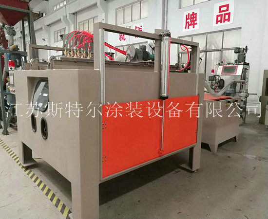 斯特爾機械為依諾威波公司設計制造數控自動液體噴砂機交付使用,實現全自動噴砂處理工作,達到環保排放標準,可持續運營實現自動噴砂機加工流程等特點, 噴砂機清洗主機部分、噴砂清洗機系統、噴砂槍自動移動裝置、裝盤自動升降移動裝置、噴砂機專用水霧分離系統、控制系統等組成一套完整的自動噴砂機設備。