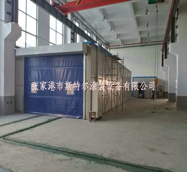 噴鋅房長度(du)16X5.8X3.5m,內墻選取10#方管成為骨架,嵌到(dao)75mm巖棉彩鋼板。大道(dao)為電動四輪提(ti)拔式,末端設備粒子物篩選墻。
